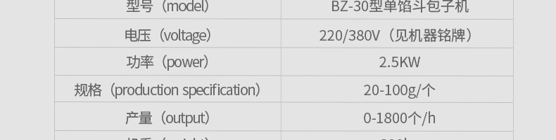 BZ-30型單餡斗包子機,可生產(chǎn)豆沙包、南瓜餅、肉包、小籠包、菜包、圓饅頭、奶黃包、叉燒包、湯包、水晶包等幾十種包餡制品。適用于個體戶、速凍食品廠、學(xué)校等各種工作場所??蓾M足不同客戶群體。免費提供工藝技術(shù)。