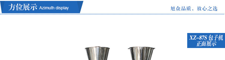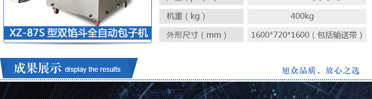 XZ-87S型雙餡斗全自動(dòng)包子機(jī),可生產(chǎn)各種肉包、肉菜包、菜包、小籠包、湯包、水晶包、圓饅頭、奶黃包、豆沙包、叉燒包、南瓜餅等幾十種包餡制品。適用于賓館、飯店、學(xué)校、機(jī)關(guān)企業(yè)食堂、饅頭或包子加工廠、早餐工程店及速凍食品廠等單位。可滿足不同客戶群體。免費(fèi)提供工藝技術(shù)。免費(fèi)上門(mén)培訓(xùn)指導(dǎo)安裝。