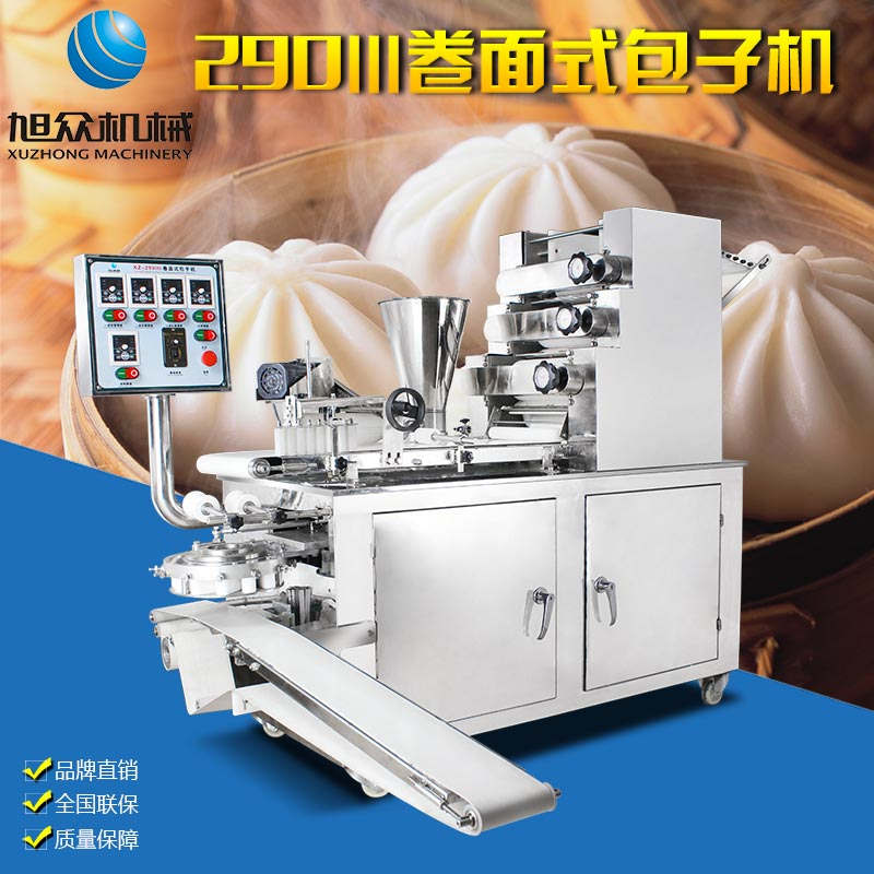 290III卷面式包子機,可生產(chǎn)各種不同餡料的包子、各式包餡食品,如豆沙包、南瓜餅、肉包、小籠包、水晶包等幾十種包餡制品。適用于個體戶、食品廠、學(xué)校等單位食堂。可滿足不同客戶群體。免費提供工藝技術(shù)。
