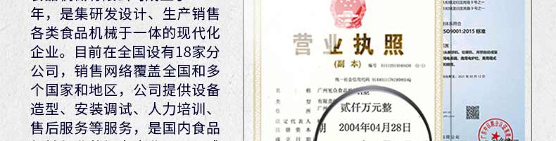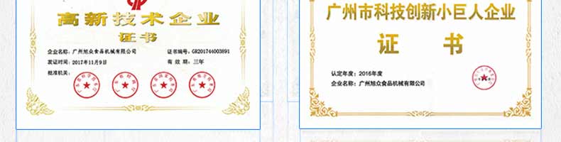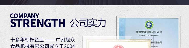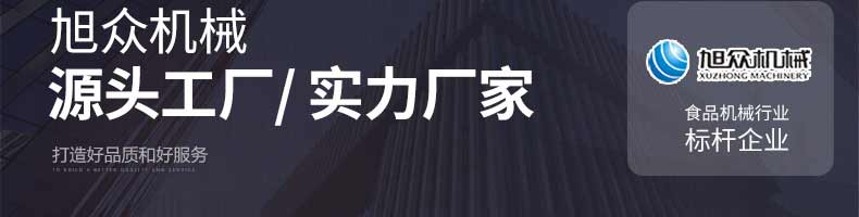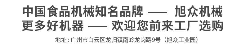 廣州旭眾食品機械有限公司是一家集科研開發(fā),生產設計,營銷服務為一體的現代化生產企業(yè)。現代化生產車間,精湛制造技術,所產機械歷經市場重重考驗,不斷贏得海內外客戶的贊譽。