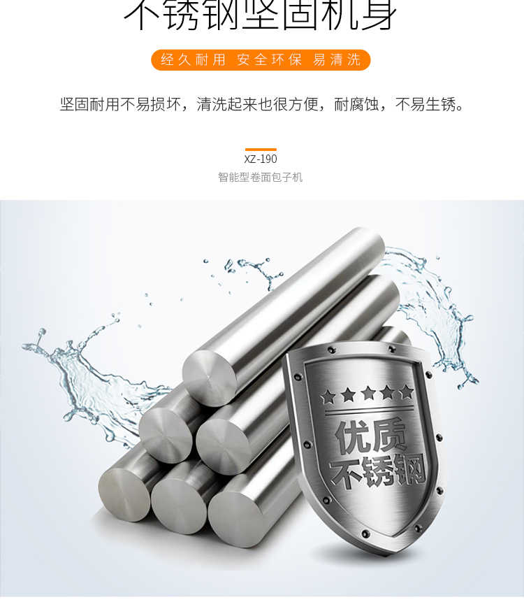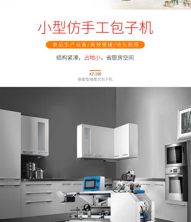 XZ-190智能型卷面式包子機,科技和工藝出乎想象不傷面筋,不斷面筋,薄厚調(diào)節(jié)自如可直接調(diào)節(jié)面皮的薄厚,所出產(chǎn)品外形大小統(tǒng)一,遠(yuǎn)比手工制作美觀!