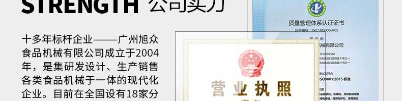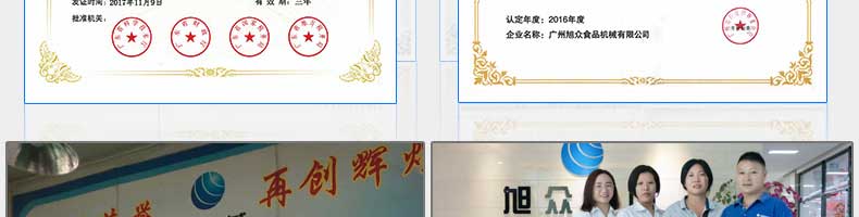 廣州旭眾食品機(jī)械有限公司是一家集科研開發(fā),生產(chǎn)設(shè)計(jì),營銷服務(wù)為一體的現(xiàn)代化生產(chǎn)企業(yè)?,F(xiàn)代化生產(chǎn)車間,精湛制造技術(shù),所產(chǎn)機(jī)械歷經(jīng)市場(chǎng)重重考驗(yàn),不斷贏得海內(nèi)外客戶的贊譽(yù)。