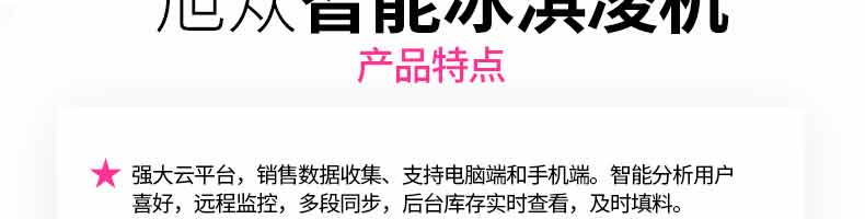 無人售貨冰淇淋機, 人工成本越來越高,無人店、無人售賣機必將是一個趨勢。簡單而又重復(fù)的勞動(售賣)必將被智能無人替代。無人售貨自助冰淇淋機支持多種支付方式,支持遠程監(jiān)管功能,支持預(yù)冷保鮮,支持多種口味混合,自動清洗少料報警。無需人工、場地?zé)o限制。