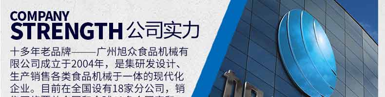 廣州旭眾食品機(jī)械有限公司是一家集科研開發(fā),生產(chǎn)設(shè)計,營銷服務(wù)為一體的現(xiàn)代化生產(chǎn)企業(yè)?,F(xiàn)代化生產(chǎn)車間,精湛制造技術(shù),所產(chǎn)機(jī)械歷經(jīng)市場重重考驗,不斷贏得海內(nèi)外客戶的贊譽(yù)。