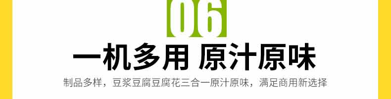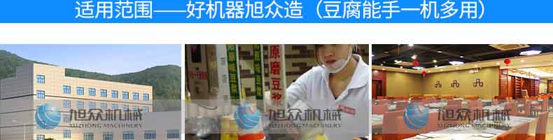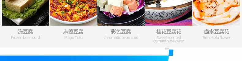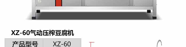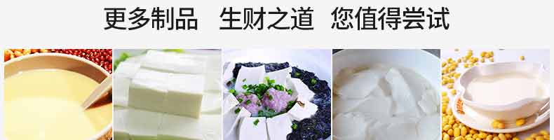 XZ-60智能豆腐機(jī),一機(jī)多用:可生產(chǎn)豆腐系列產(chǎn)品:單色(嫩,老)豆腐、多彩豆 腐、單色豆腐皮、多色豆腐皮、彩色豆腐干、豆?jié){、豆花等豆制品制作,還可以與其他設(shè)備和工藝配套生 產(chǎn)更多的豆制品。