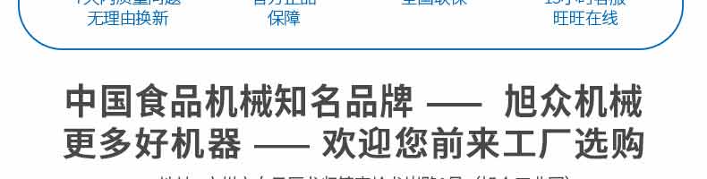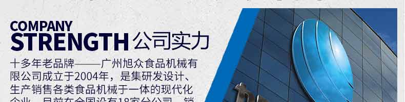 廣州旭眾食品機(jī)械有限公司是一家集科研開發(fā),生產(chǎn)設(shè)計(jì),營銷服務(wù)為一體的現(xiàn)代化生產(chǎn)企業(yè)?,F(xiàn)代化生產(chǎn)車間,精湛制造技術(shù),所產(chǎn)機(jī)械歷經(jīng)市場重重考驗(yàn),不斷贏得海內(nèi)外客戶的贊譽(yù)。