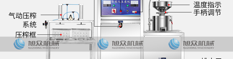 XZ-200 智能化豆腐機(jī),蒸汽煮熟、長久保鮮。通過水蒸氣高溫加熱煮熟,保持原有光澤與鮮美。人性化設(shè)計操作簡單,多項監(jiān)測機(jī)械的安全性。