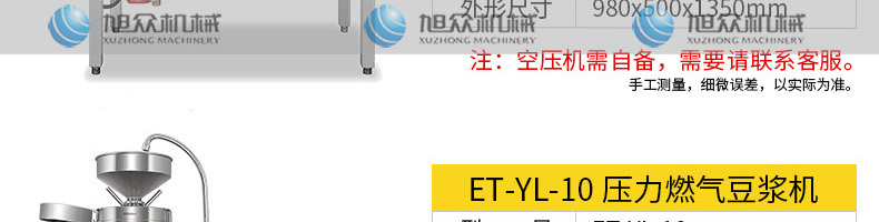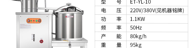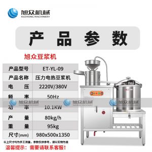 ET-YL-09壓力電熱豆?jié){機,多功能商用豆?jié){機,細(xì)、香、濃。我們珍惜每一顆大豆,讓每顆大豆進(jìn)發(fā)營養(yǎng)價值。旭眾豆?jié){機做您的招牌豆?jié){打磨細(xì)膩、口感香濃、回味無窮。