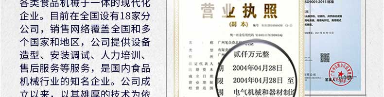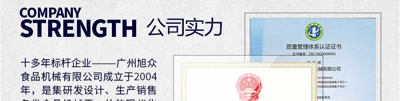 廣州旭眾食品機械有限公司是一家集科研開發(fā),生產設計,營銷服務為一體的現(xiàn)代化生產企業(yè)。現(xiàn)代化生產車間,精湛制造技術,所產機械歷經市場重重考驗,不斷贏得海內外客戶的贊譽。