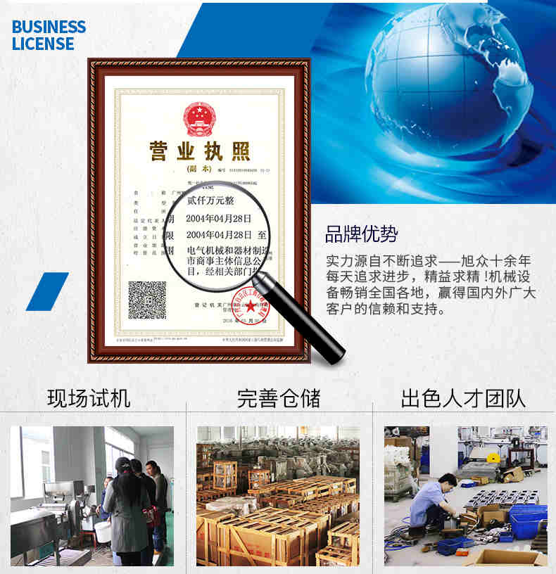 廣州旭眾食品機械有限公司是一家集科研開發(fā),生產(chǎn)設(shè)計,營銷服務(wù)為一體的現(xiàn)代化生產(chǎn)企業(yè)?,F(xiàn)代化生產(chǎn)車間,精湛制造技術(shù),所產(chǎn)機械歷經(jīng)市場重重考驗,不斷贏得海內(nèi)外客戶的贊譽。