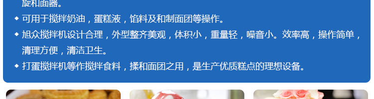 SZM10、15、20、25、30攪拌機系列,可用于攪拌奶油、蛋糕液、餡料及和制面團等操作。打蛋攪拌機等作攪拌食料、揉和面團之用,是生產(chǎn)優(yōu)質(zhì)糕點的理想設(shè)備,適用于酒店、飯店、學(xué)校部門、面包屋以及食品廠家。