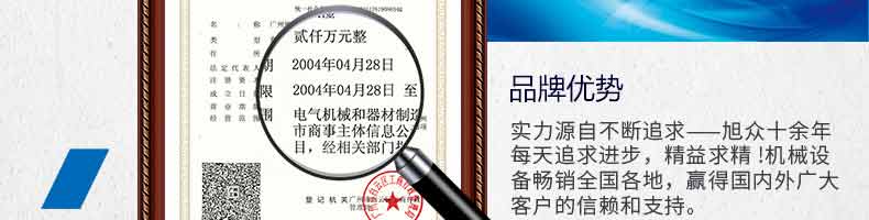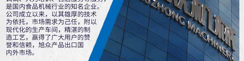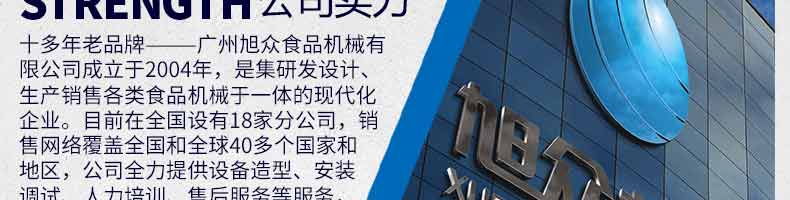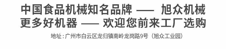 廣州旭眾食品機(jī)械有限公司是一家集科研開發(fā),生產(chǎn)設(shè)計(jì),營銷服務(wù)為一體的現(xiàn)代化生產(chǎn)企業(yè)?,F(xiàn)代化生產(chǎn)車間,精湛制造技術(shù),所產(chǎn)機(jī)械歷經(jīng)市場(chǎng)重重考驗(yàn),不斷贏得海內(nèi)外客戶的贊譽(yù)。