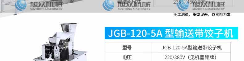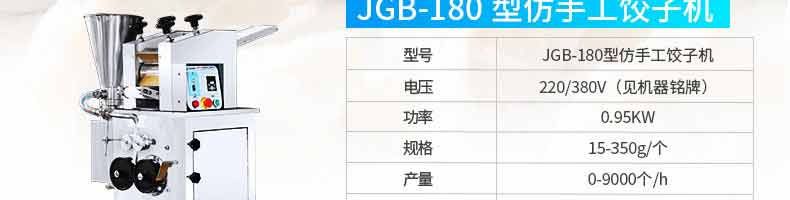 JGB-210型仿手工餃子機,本機采用自動壓面皮包餃子的新工藝技術(shù),本機可生產(chǎn)速凍餃子等,能生產(chǎn)各種肉餡、肉菜混合餡、全菜餡及其他種餡的餃子,適用于餃子館、食品生產(chǎn)廠家、賓館、飯店、餐廳、團體食堂、學(xué)校、部隊。免費上門安裝調(diào)試,贈送面點工藝