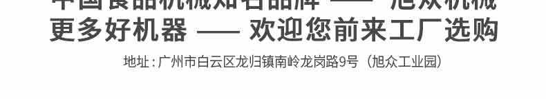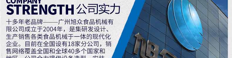 廣州旭眾食品機械有限公司是一家集科研開發(fā),生產(chǎn)設(shè)計,營銷服務(wù)為一體的現(xiàn)代化生產(chǎn)企業(yè)。現(xiàn)代化生產(chǎn)車間,精湛制造技術(shù),所產(chǎn)機械歷經(jīng)市場重重考驗,不斷贏得海內(nèi)外客戶的贊譽。