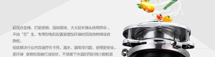 ACLQ37-廚房垃圾處理器,采用先進(jìn)的研磨系統(tǒng),采用特殊合金錘粉技術(shù),能根據(jù)垃圾的強(qiáng)度,自動(dòng)調(diào)節(jié)工作位置,處理垃圾的范圍和細(xì)度優(yōu)良。能夠有效地將食物垃圾研磨成細(xì)小顆粒,直接從下水管道排出,從而實(shí)現(xiàn)及時(shí)方便快捷的廚房清潔,滿(mǎn)足現(xiàn)代健康家居的要求。