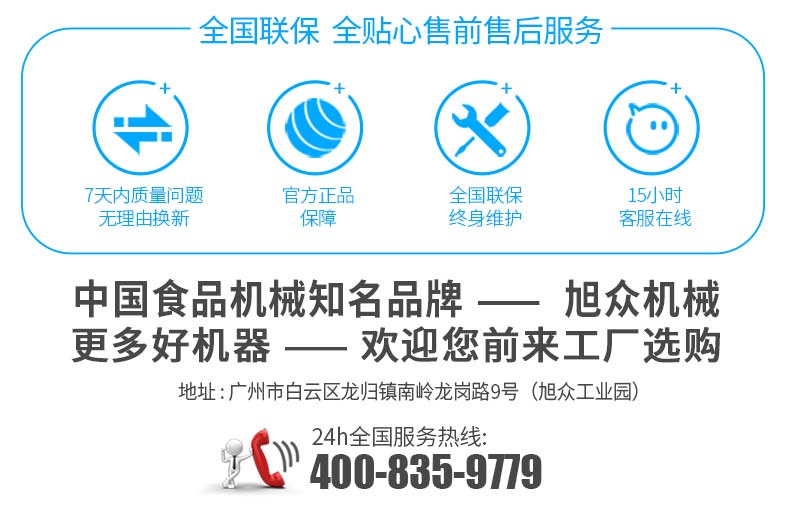 廣州旭眾食品機械有限公司是一家集科研開發(fā),生產(chǎn)設(shè)計,營銷服務(wù)為一體的現(xiàn)代化生產(chǎn)企業(yè)。現(xiàn)代化生產(chǎn)車間,精湛制造技術(shù),所產(chǎn)機械歷經(jīng)市場重重考驗,不斷贏得海內(nèi)外客戶的贊譽。