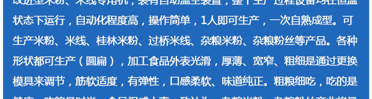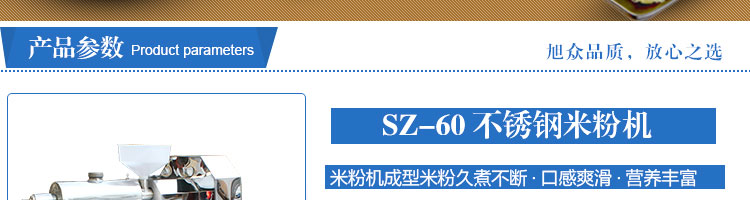 SZ-60不銹鋼米粉機,可生產(chǎn)米粉、米線、桂林米粉、過橋米線、年糕、糍粑等產(chǎn)品。各種形狀都可生產(chǎn)(圓、扁),加工食品外表光滑,厚薄、寬窄、粗細(xì)均勻可調(diào),筋軟適度,有彈性,口感柔軟、味道純正。