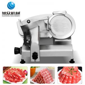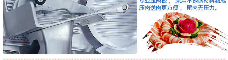 臺(tái)式半自動(dòng)切片機(jī),適合切無骨肉類和其他類似榨菜帶有彈性的食物,把原材料肉切成肉片,并可自動(dòng)成卷狀??汕信H馄?、羊肉片等