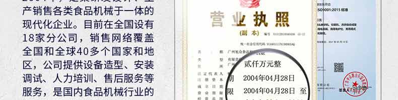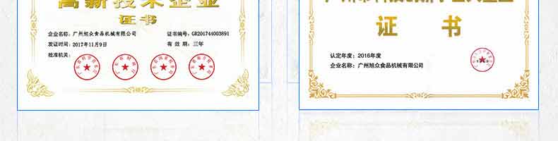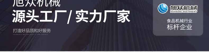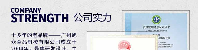 廣州旭眾食品機(jī)械有限公司是一家集科研開(kāi)發(fā),生產(chǎn)設(shè)計(jì),營(yíng)銷(xiāo)服務(wù)為一體的現(xiàn)代化生產(chǎn)企業(yè)?,F(xiàn)代化生產(chǎn)車(chē)間,精湛制造技術(shù),所產(chǎn)機(jī)械歷經(jīng)市場(chǎng)重重考驗(yàn),不斷贏得海內(nèi)外客戶的贊譽(yù)。