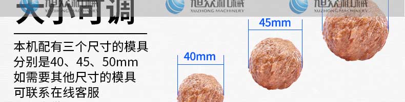 XZ-605S肉丸成型機,大直徑肉丸成型機,主要生產大肉丸、獅子頭等可訂做30-60mm的規(guī)格。輕松做好美味丸子解放雙手,輕松享受創(chuàng)業(yè)財富!