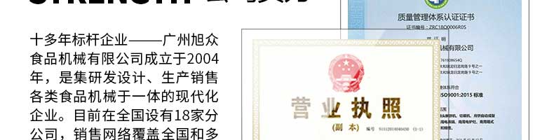 廣州旭眾食品機械有限公司是一家集科研開發(fā),生產設計,營銷服務為一體的現代化生產企業(yè)?,F代化生產車間,精湛制造技術,所產機械歷經市場重重考驗,不斷贏得海內外客戶的贊譽。