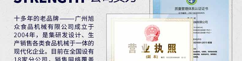 廣州旭眾食品機(jī)械有限公司是一家集科研開發(fā),生產(chǎn)設(shè)計(jì),營銷服務(wù)為一體的現(xiàn)代化生產(chǎn)企業(yè)?,F(xiàn)代化生產(chǎn)車間,精湛制造技術(shù),所產(chǎn)機(jī)械歷經(jīng)市場重重考驗(yàn),不斷贏得海內(nèi)外客戶的贊譽(yù)。