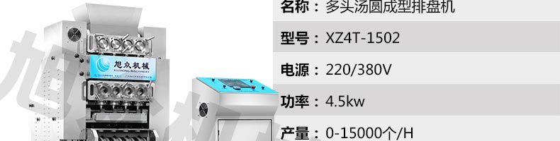 XZ4T-1501多功能搓圓擺盤機(jī)/湯圓機(jī),本機(jī)只要將面團(tuán)放入進(jìn)料口,開機(jī)便可自動(dòng)搓圓、成型的設(shè)備,一次性成型四次產(chǎn)品,制品不易變形,工作效率高,相當(dāng)于15-20個(gè)工人同時(shí)手工制作湯圓,并可自動(dòng)排盤,真正的低投入、高收效、省錢省工。