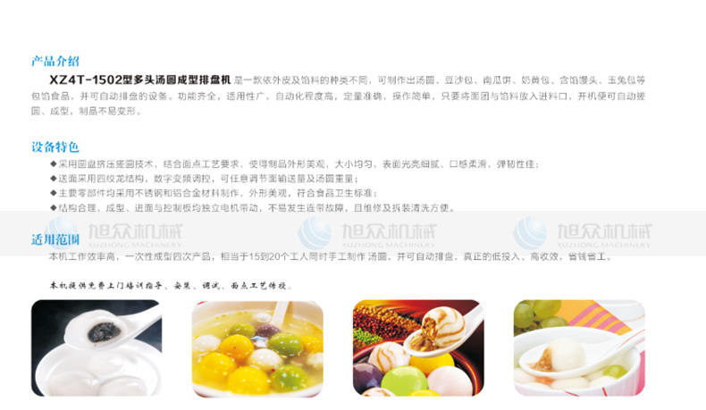 XZ4T -1502多頭湯圓成型排盤機(jī),湯圓機(jī),本機(jī)只要將面團(tuán)放入進(jìn)料口,開(kāi)機(jī)便可自動(dòng)搓圓、成型的設(shè)備,一次性成型四次產(chǎn)品,制品不易變形,工作效率高