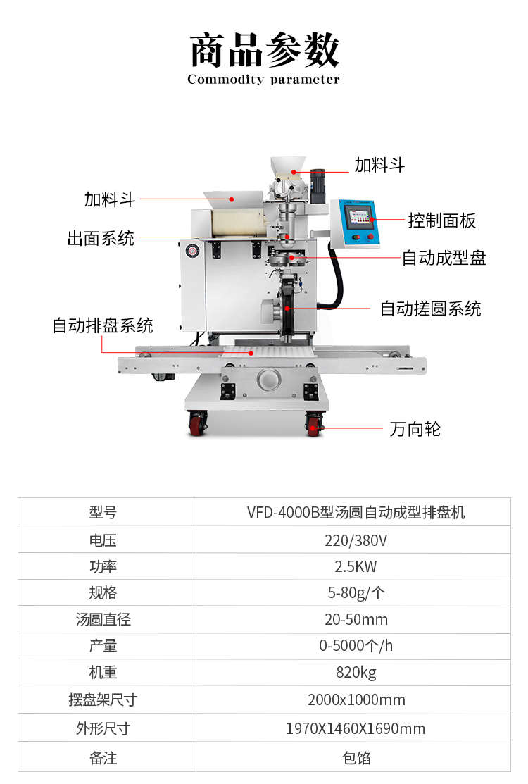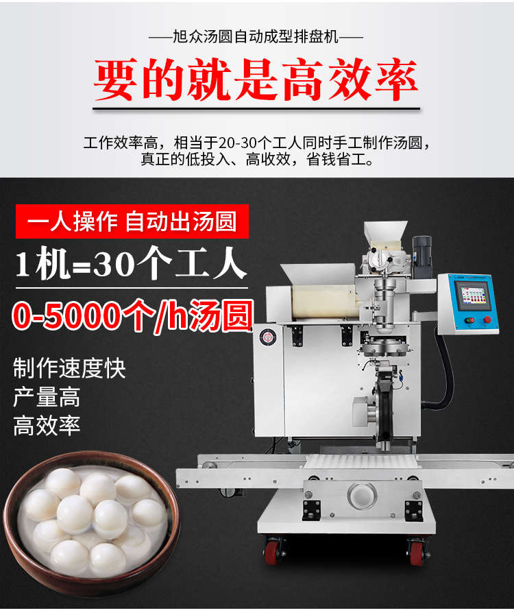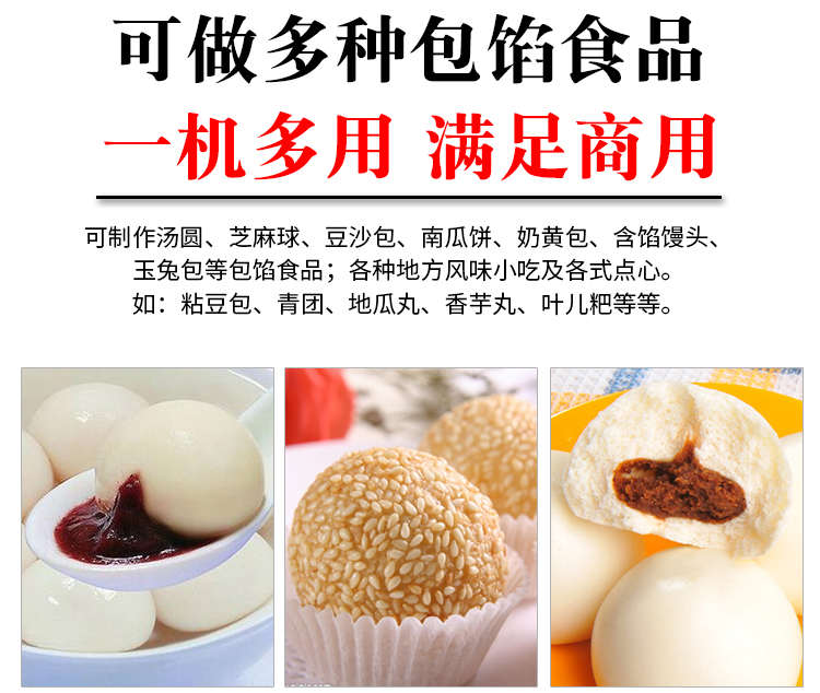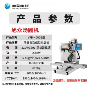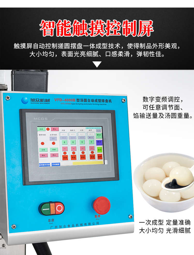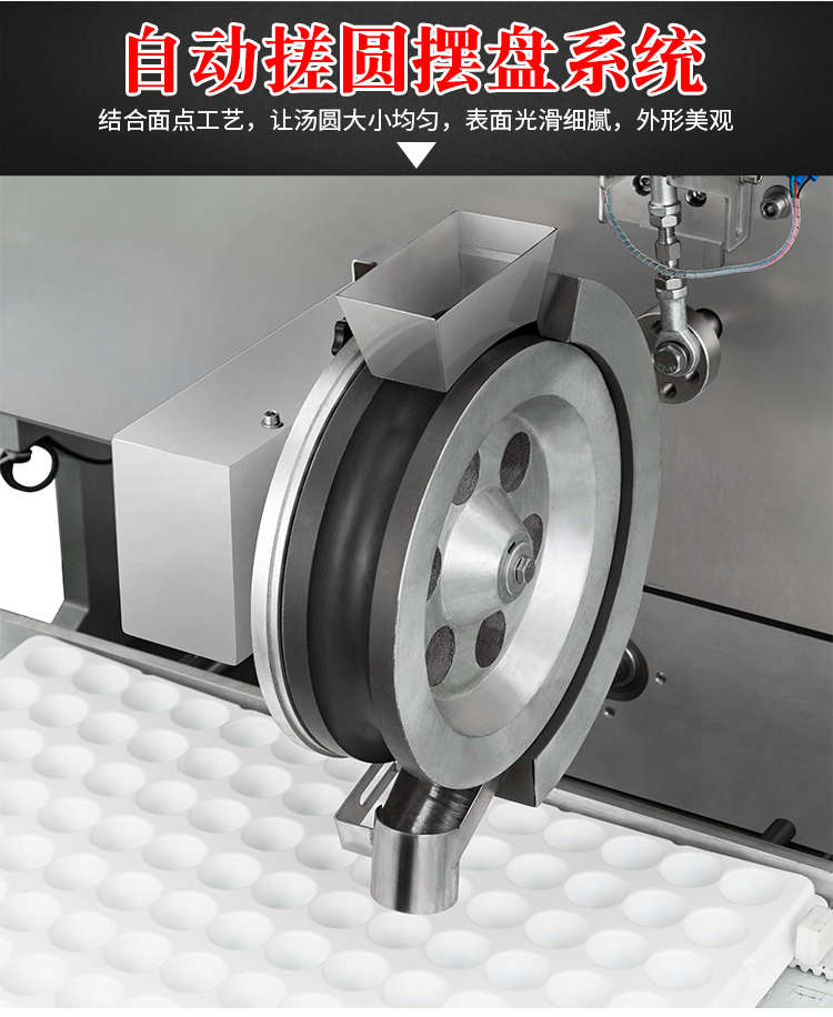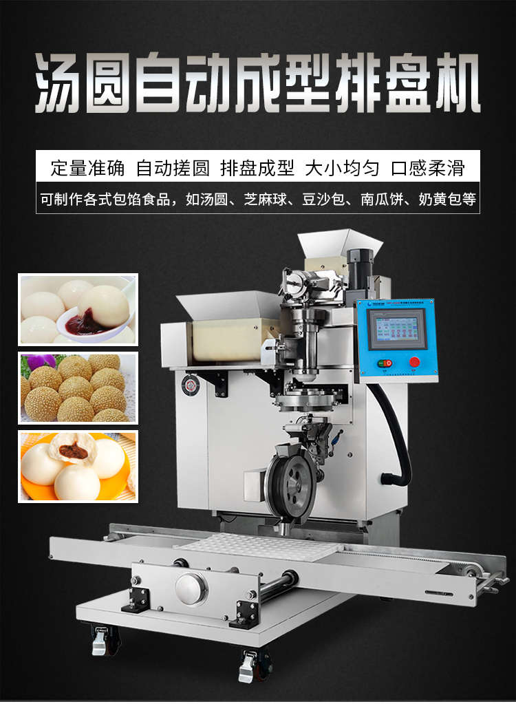 VFD-4000B湯圓機(jī),定量準(zhǔn)確自動(dòng)搓圓排盤(pán)成型大小均勻口感柔滑??芍谱鞲魇桨W食品,如湯圓、芝麻球、豆沙包、南瓜餅、奶黃包等