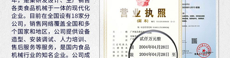 廣州旭眾食品機(jī)械有限公司是一家集科研開發(fā),生產(chǎn)設(shè)計(jì),營(yíng)銷服務(wù)為一體的現(xiàn)代化生產(chǎn)企業(yè)?,F(xiàn)代化生產(chǎn)車間,精湛制造技術(shù),所產(chǎn)機(jī)械歷經(jīng)市場(chǎng)重重考驗(yàn),不斷贏得海內(nèi)外客戶的贊譽(yù)。