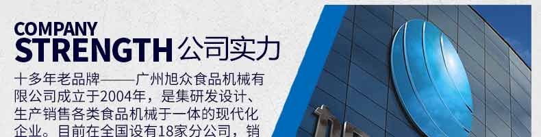廣州旭眾食品機械有限公司是一家集科研開發(fā),生產(chǎn)設(shè)計,營銷服務(wù)為一體的現(xiàn)代化生產(chǎn)企業(yè)。現(xiàn)代化生產(chǎn)車間,精湛制造技術(shù),所產(chǎn)機械歷經(jīng)市場重重考驗,不斷贏得海內(nèi)外客戶的贊譽。