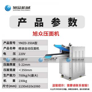 YMZD-350A自動壓面,商用全自動壓面機快速揉面,自動壓面包子餃子慢饅頭偭面館等場所適用不銹鋼機身厚薄可調(diào)、強勁動力??梢匝h(huán)壓面、揉面,模擬手工揉面,不破壞面筋,面皮的口感細(xì)膩。
