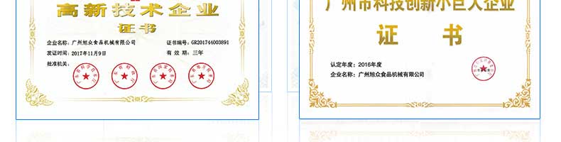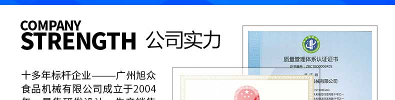 廣州旭眾食品機械有限公司是一家集科研開發(fā),生產(chǎn)設(shè)計,營銷服務(wù)為一體的現(xiàn)代化生產(chǎn)企業(yè)。現(xiàn)代化生產(chǎn)車間,精湛制造技術(shù),所產(chǎn)機械歷經(jīng)市場重重考驗,不斷贏得海內(nèi)外客戶的贊譽。