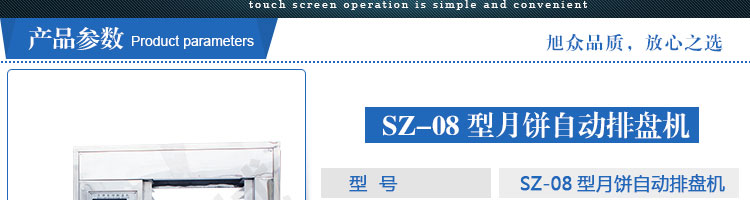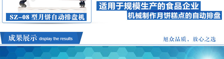 SZ-08型月餅自動排盤機,可同于制作各種月餅。適用于蛋糕房、休閑食品廠、食品加工產(chǎn)、面包房、月餅加工廠、超市、學校、食堂等各種工作場所??蓾M足不同客戶群體。免費提供工藝技術。
