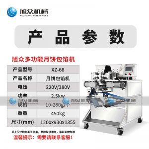 XZ-68月餅包餡機,一次成型大小均勻,操作簡單,可生產(chǎn)豆沙、五仁、蓮蓉等餡料的包餡類產(chǎn)品制品皮餡比例可調(diào),大小統(tǒng)