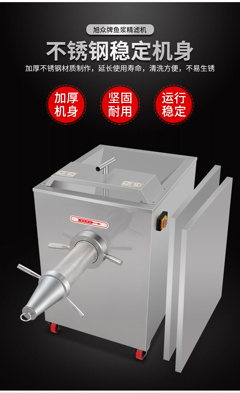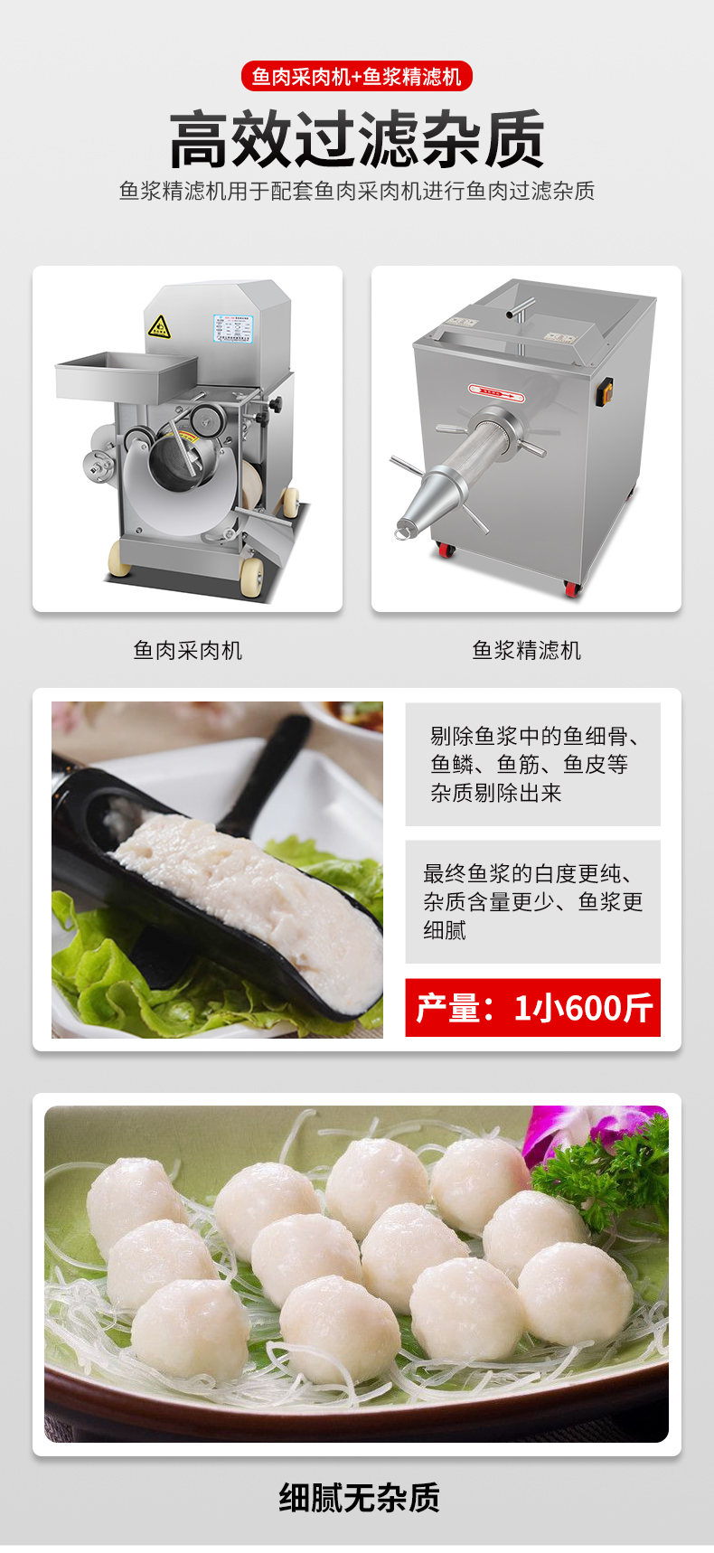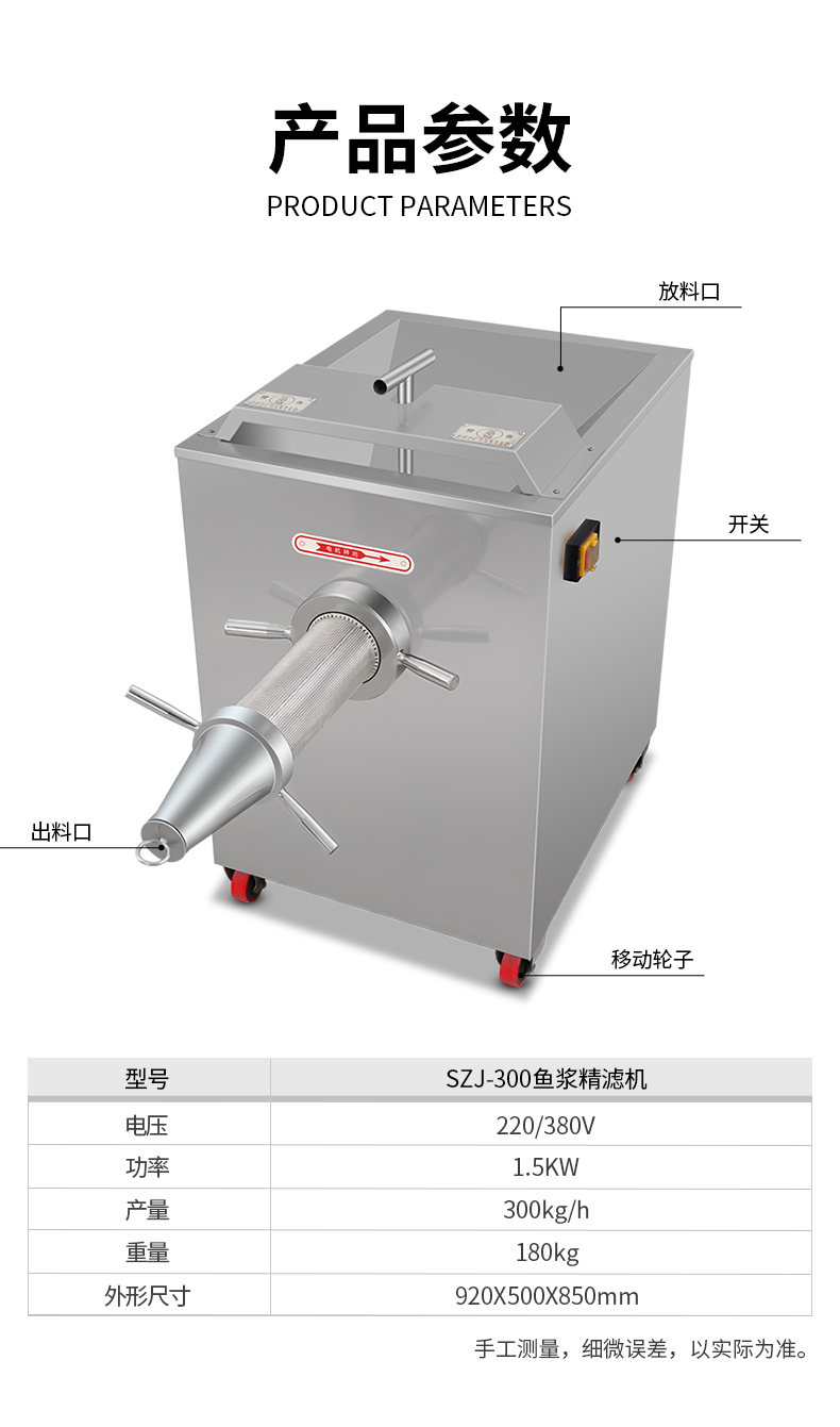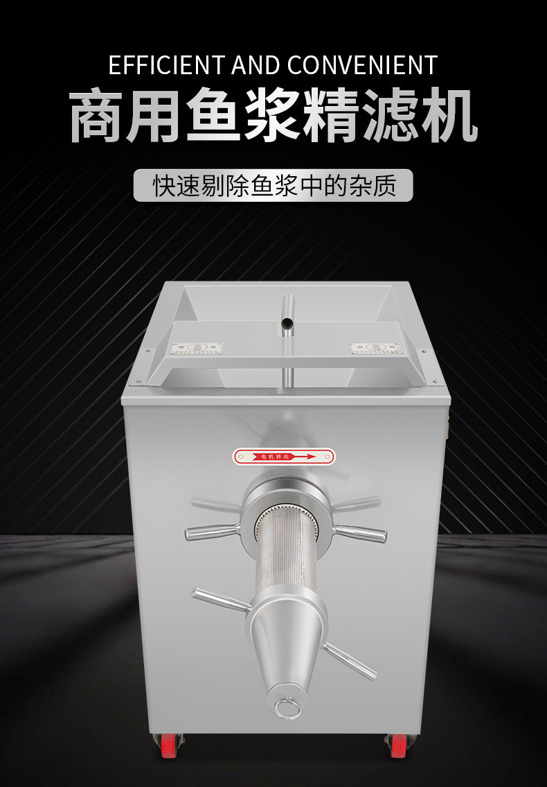 SZJ-300魚漿精濾機,商用創(chuàng)業(yè)魚漿精濾機,用于配套魚肉采肉機進(jìn)行魚肉過濾雜質(zhì)。節(jié)省人工開支,人工加工魚漿,效率慢剔除魚細(xì)骨,不干凈,有了魚漿精濾機,一人就可以很快制作多種魚漿。