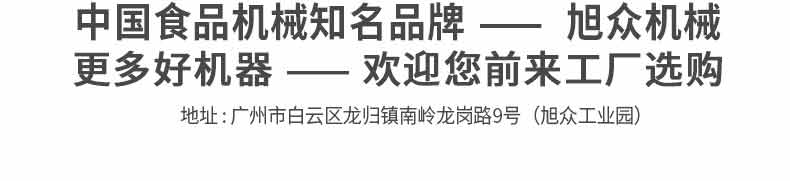 廣州旭眾食品機(jī)械有限公司是一家集科研開發(fā),生產(chǎn)設(shè)計(jì),營銷服務(wù)為一體的現(xiàn)代化生產(chǎn)企業(yè)?,F(xiàn)代化生產(chǎn)車間,精湛制造技術(shù),所產(chǎn)機(jī)械歷經(jīng)市場(chǎng)重重考驗(yàn),不斷贏得海內(nèi)外客戶的贊譽(yù)。